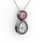 Beyaz zirkon ve pembe kuvars 925 ayar siyah rodyum kaplama gümüş kolye (40 cm altın rolo zincir)