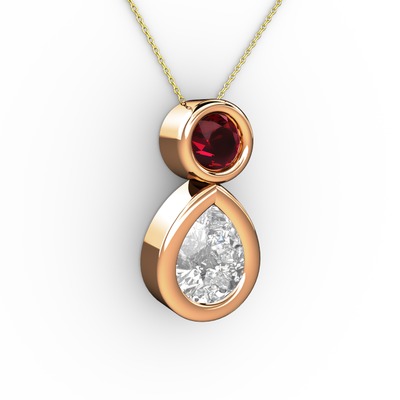Beyaz zirkon ve rodolit garnet 14 ayar rose altın kolye (40 cm altın rolo zincir)