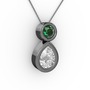 Beyaz zirkon ve yeşil kuvars 925 ayar siyah rodyum kaplama gümüş kolye (40 cm gümüş rolo zincir)