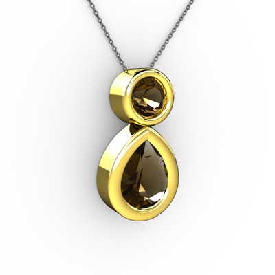 Dumanlı kuvars 18 ayar altın kolye (40 cm gümüş rolo zincir)