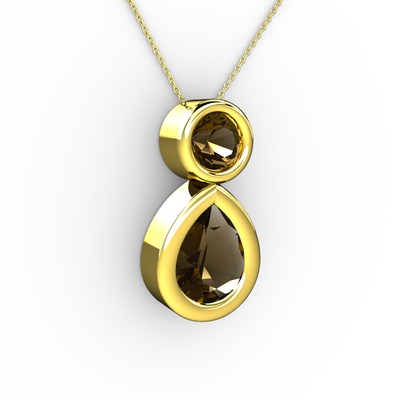 Dumanlı kuvars 18 ayar altın kolye (40 cm gümüş rolo zincir)