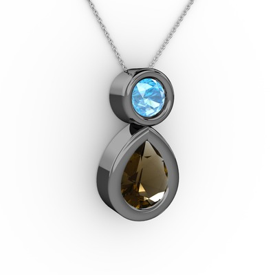 Dumanlı kuvars ve akuamarin 925 ayar siyah rodyum kaplama gümüş kolye (40 cm beyaz altın rolo zincir)