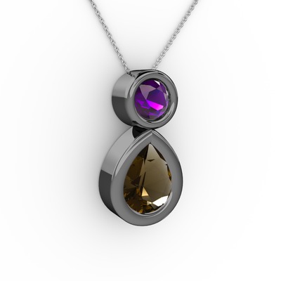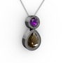 Dumanlı kuvars ve ametist 925 ayar siyah rodyum kaplama gümüş kolye (40 cm beyaz altın rolo zincir)