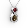 Dumanlı kuvars ve garnet 18 ayar beyaz altın kolye (40 cm beyaz altın rolo zincir)