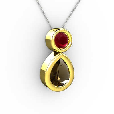 Dumanlı kuvars ve kök yakut 14 ayar altın kolye (40 cm beyaz altın rolo zincir)