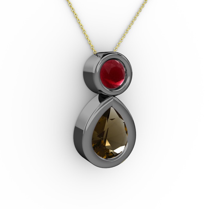 Dumanlı kuvars ve kök yakut 925 ayar siyah rodyum kaplama gümüş kolye (40 cm gümüş rolo zincir)