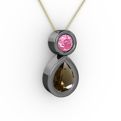 Dumanlı kuvars ve pembe kuvars 925 ayar siyah rodyum kaplama gümüş kolye (40 cm altın rolo zincir)