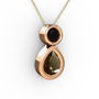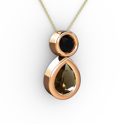 Dumanlı kuvars ve siyah zirkon 14 ayar rose altın kolye (40 cm gümüş rolo zincir)