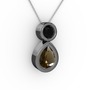 Dumanlı kuvars ve siyah zirkon 925 ayar siyah rodyum kaplama gümüş kolye (40 cm gümüş rolo zincir)