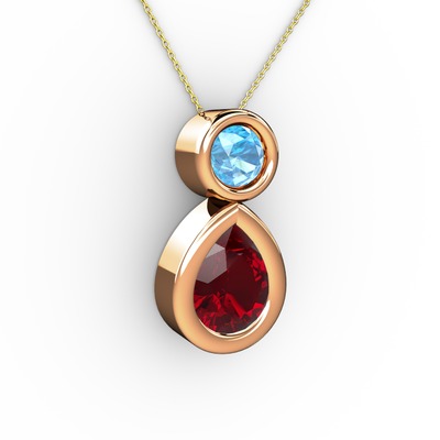 Garnet ve akuamarin 18 ayar rose altın kolye (40 cm gümüş rolo zincir)