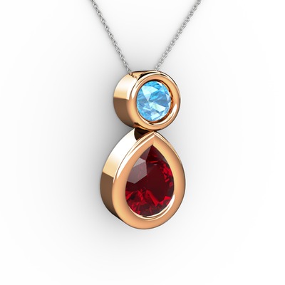 Garnet ve akuamarin 925 ayar rose altın kaplama gümüş kolye (40 cm gümüş rolo zincir)