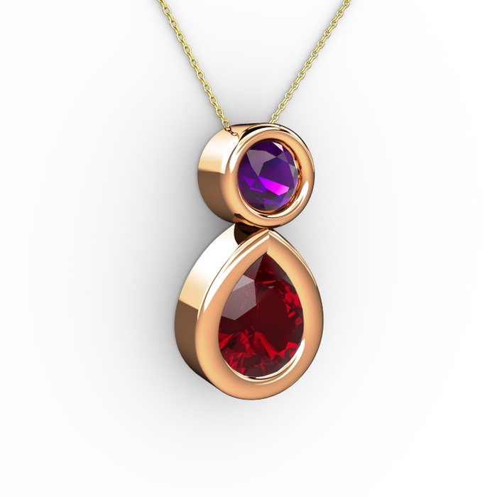 Garnet ve ametist 18 ayar rose altın kolye (40 cm gümüş rolo zincir)