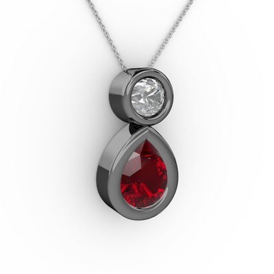 Garnet ve beyaz zirkon 925 ayar siyah rodyum kaplama gümüş kolye (40 cm gümüş rolo zincir)