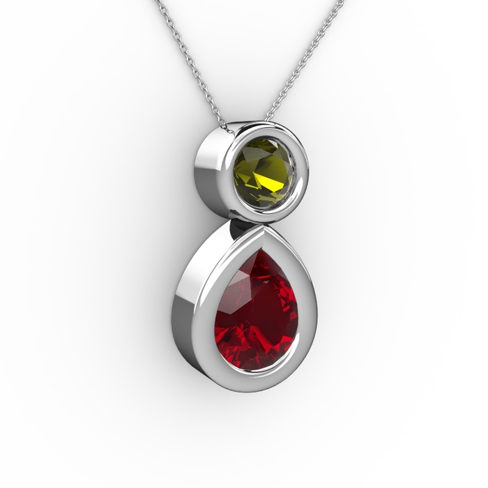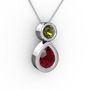 Garnet ve peridot 8 ayar beyaz altın kolye (40 cm beyaz altın rolo zincir)