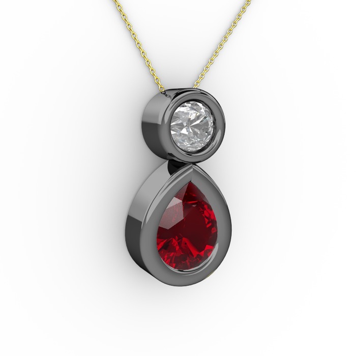 Garnet ve pırlanta 925 ayar siyah rodyum kaplama gümüş kolye (0.5 karat, 40 cm altın rolo zincir)