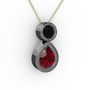 Garnet ve siyah zirkon 925 ayar siyah rodyum kaplama gümüş kolye (40 cm altın rolo zincir)