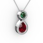 Garnet ve yeşil kuvars 8 ayar beyaz altın kolye (40 cm beyaz altın rolo zincir)