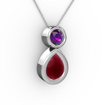 Kök yakut ve ametist 8 ayar beyaz altın kolye (40 cm beyaz altın rolo zincir)