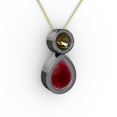 Kök yakut ve dumanlı kuvars 925 ayar siyah rodyum kaplama gümüş kolye (40 cm altın rolo zincir)