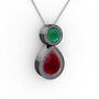 Kök yakut ve kök zümrüt 925 ayar siyah rodyum kaplama gümüş kolye (40 cm beyaz altın rolo zincir)