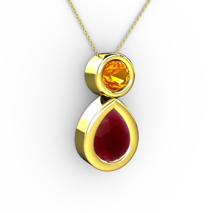 Kök yakut ve sitrin 18 ayar altın kolye (40 cm gümüş rolo zincir)