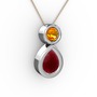 Kök yakut ve sitrin 925 ayar gümüş kolye (40 cm rose altın rolo zincir)