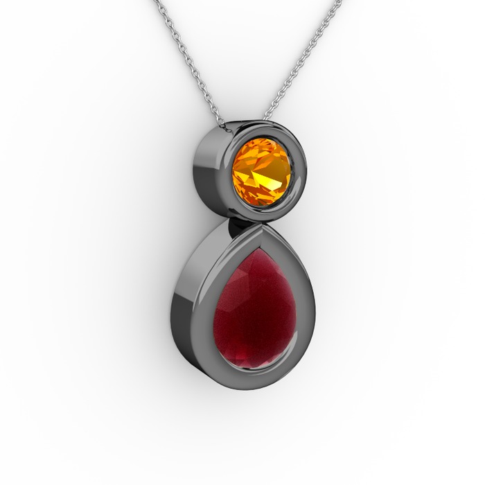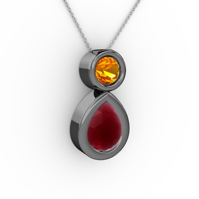 Kök yakut ve sitrin 925 ayar siyah rodyum kaplama gümüş kolye (40 cm beyaz altın rolo zincir)