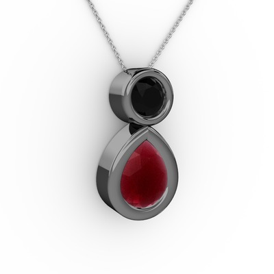 Kök yakut ve siyah zirkon 925 ayar siyah rodyum kaplama gümüş kolye (40 cm gümüş rolo zincir)