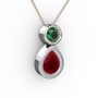 Kök yakut ve yeşil kuvars 14 ayar beyaz altın kolye (40 cm rose altın rolo zincir)