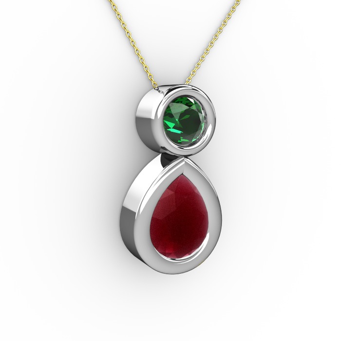 Kök yakut ve yeşil kuvars 8 ayar beyaz altın kolye (40 cm gümüş rolo zincir)