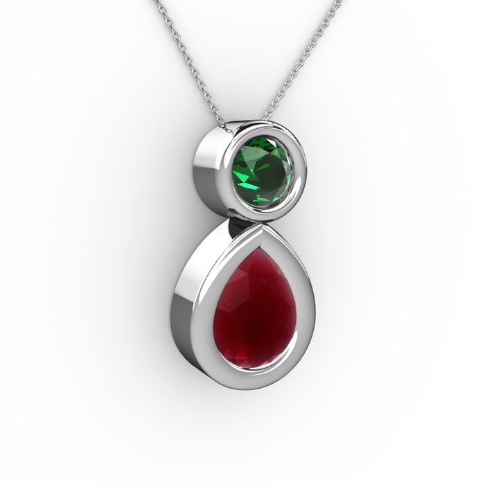 Kök yakut ve yeşil kuvars 925 ayar gümüş kolye (40 cm beyaz altın rolo zincir)