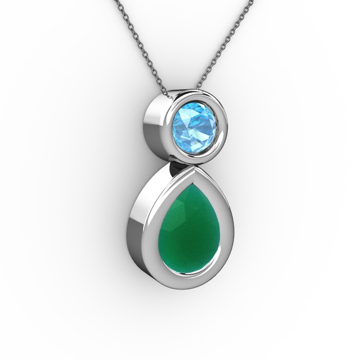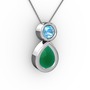 Kök zümrüt ve akuamarin 8 ayar beyaz altın kolye (40 cm gümüş rolo zincir)