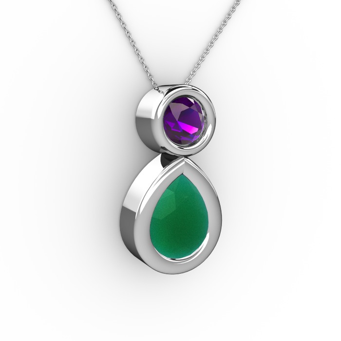 Kök zümrüt ve ametist 8 ayar beyaz altın kolye (40 cm beyaz altın rolo zincir)
