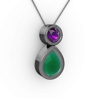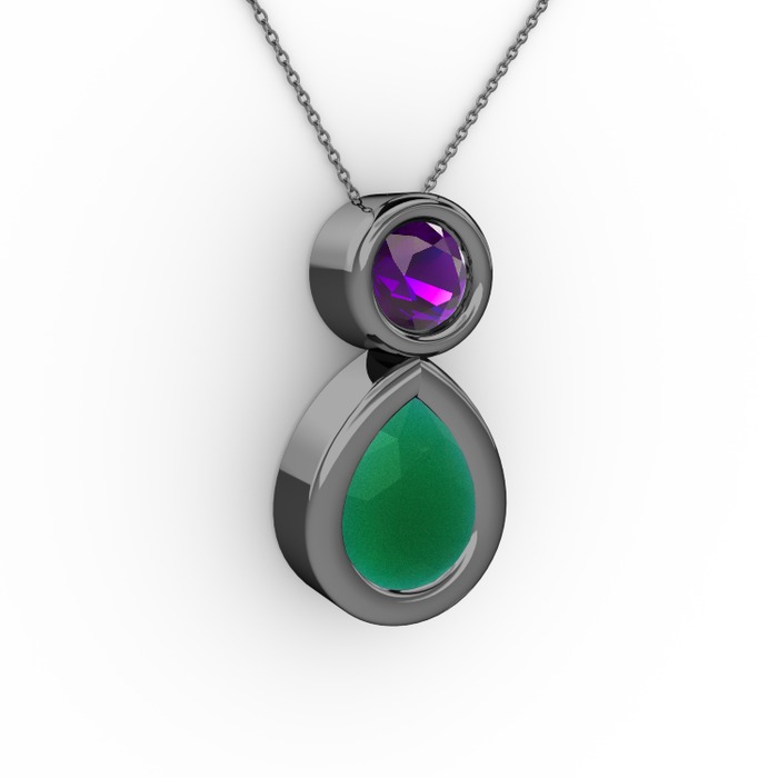 Kök zümrüt ve ametist 925 ayar siyah rodyum kaplama gümüş kolye (40 cm gümüş rolo zincir)