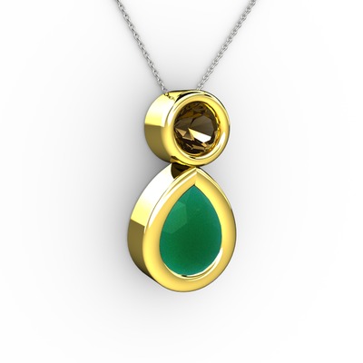 Kök zümrüt ve dumanlı kuvars 18 ayar altın kolye (40 cm beyaz altın rolo zincir)