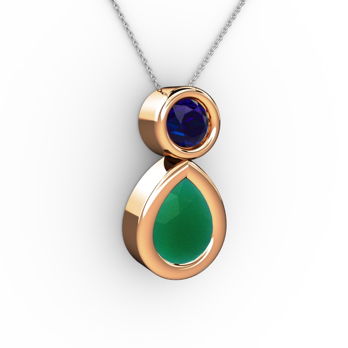 Kök zümrüt ve lab safir 14 ayar rose altın kolye (40 cm beyaz altın rolo zincir)