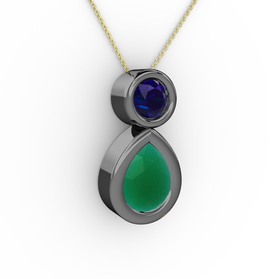Kök zümrüt ve lab safir 925 ayar siyah rodyum kaplama gümüş kolye (40 cm altın rolo zincir)