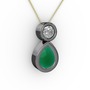 Kök zümrüt ve pırlanta 925 ayar siyah rodyum kaplama gümüş kolye (0.5 karat, 40 cm altın rolo zincir)