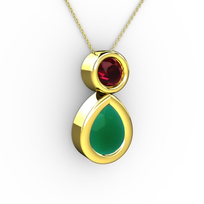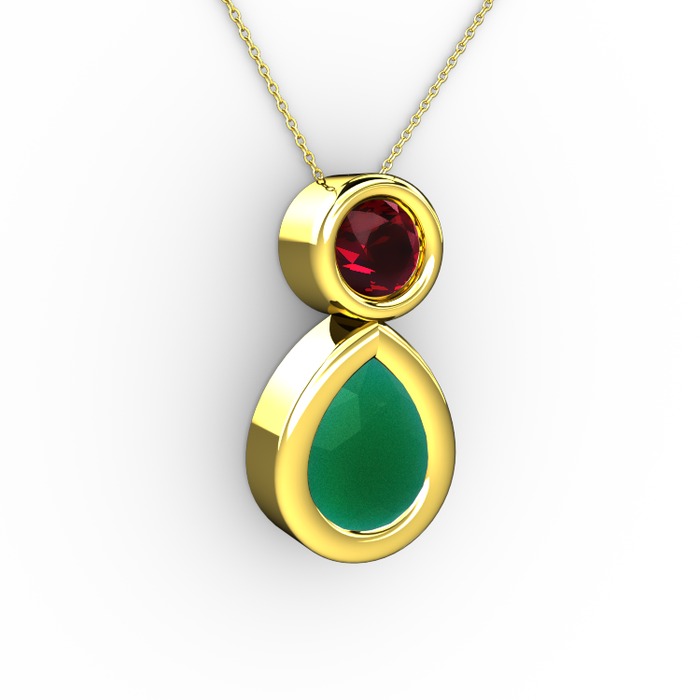 Kök zümrüt ve rodolit garnet 925 ayar altın kaplama gümüş kolye (40 cm altın rolo zincir)