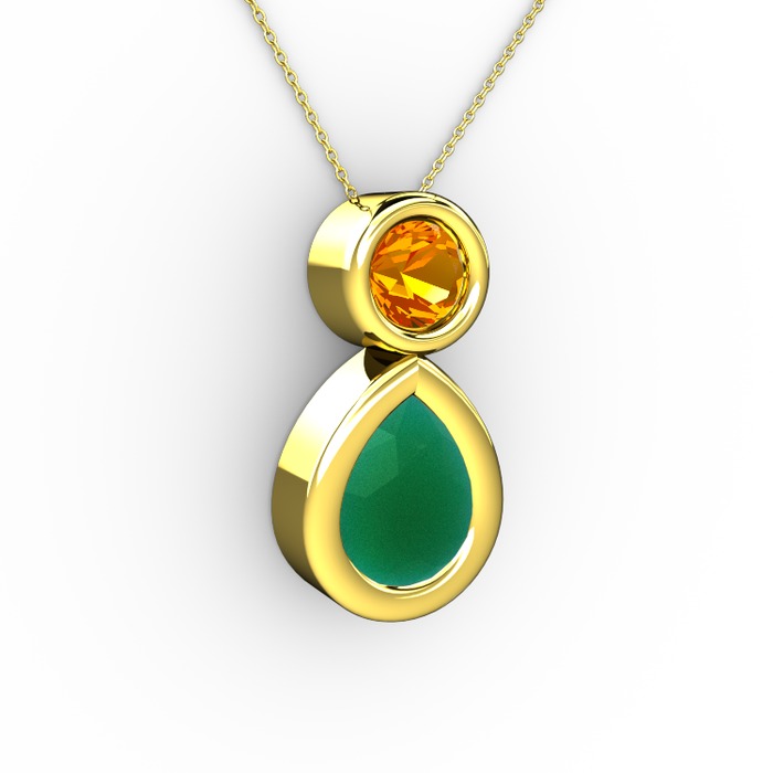 Kök zümrüt ve sitrin 18 ayar altın kolye (40 cm gümüş rolo zincir)