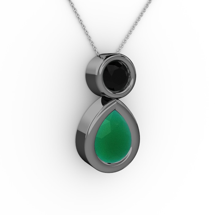 Kök zümrüt ve siyah zirkon 925 ayar siyah rodyum kaplama gümüş kolye (40 cm gümüş rolo zincir)
