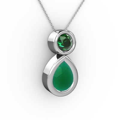 Kök zümrüt ve yeşil kuvars 925 ayar gümüş kolye (40 cm beyaz altın rolo zincir)