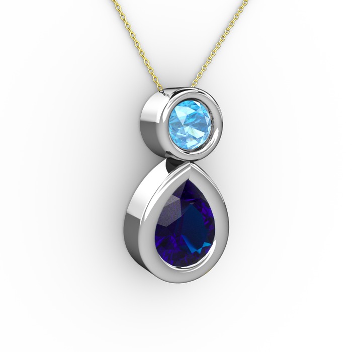 Lab safir ve akuamarin 18 ayar beyaz altın kolye (40 cm altın rolo zincir)