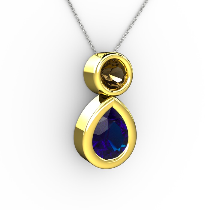 Lab safir ve dumanlı kuvars 18 ayar altın kolye (40 cm beyaz altın rolo zincir)