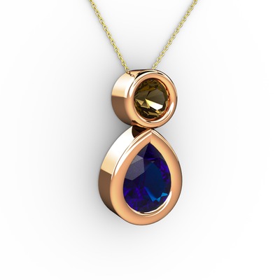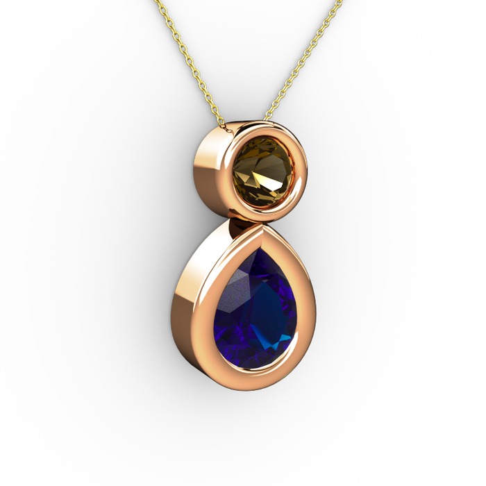 Lab safir ve dumanlı kuvars 18 ayar rose altın kolye (40 cm gümüş rolo zincir)
