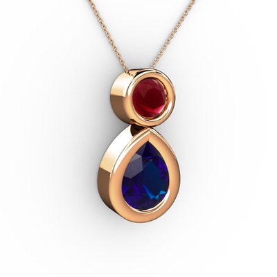Lab safir ve kök yakut 925 ayar rose altın kaplama gümüş kolye (40 cm rose altın rolo zincir)