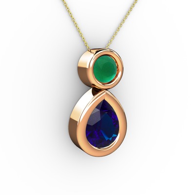 Lab safir ve kök zümrüt 8 ayar rose altın kolye (40 cm altın rolo zincir)