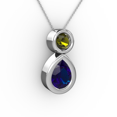 Lab safir ve peridot 925 ayar gümüş kolye (40 cm beyaz altın rolo zincir)