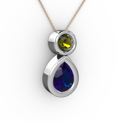 Lab safir ve peridot 925 ayar gümüş kolye (40 cm rose altın rolo zincir)