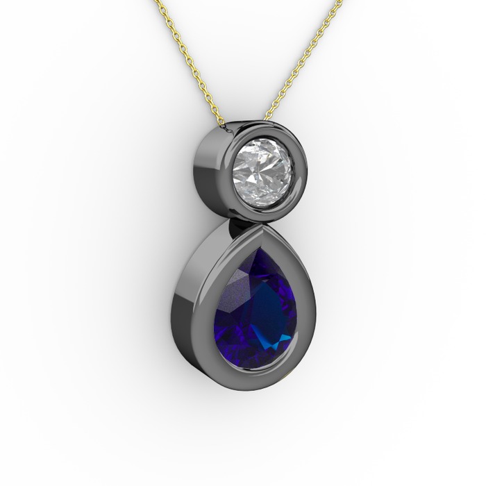 Lab safir ve pırlanta 925 ayar siyah rodyum kaplama gümüş kolye (0.5 karat, 40 cm altın rolo zincir)